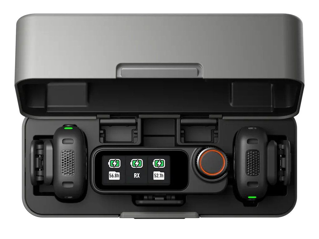 DJI Mic 3 je lahek in kompakten mikrofonski sistem. Oddajnike je mogoče pritrditi z magnetom ali s sponko, vrtljiva sponka pa omogoča nastavitev kota natančno po potrebi. Polnilno ohišje sprejme dva oddajnika in en sprejemnik – tudi z nameščenimi protivetrnimi zaščitami in magneti. Vse je takoj pripravljeno za uporabo, brez potrebe po odstranjevanju dodatkov.