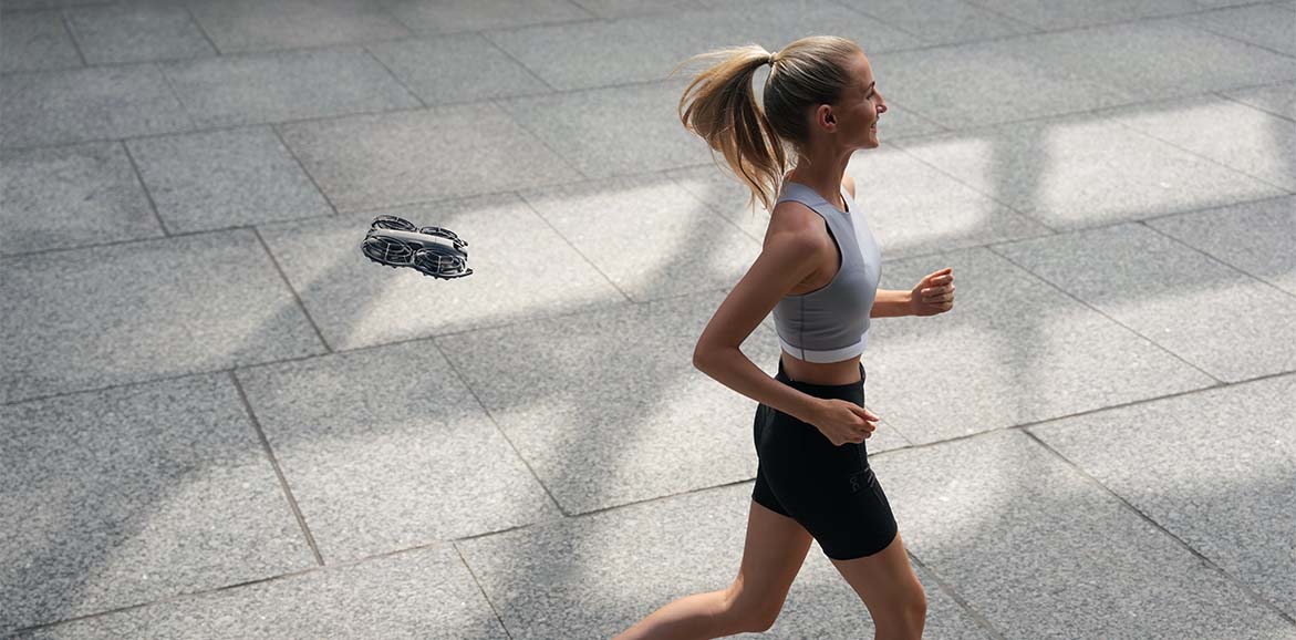 Dron vas sledi med tekom, hojo ali kolesarjenjem in vas ohranja v središču kadra.
